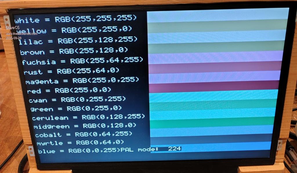 It's also worth considering that progress is moving toward an HDMI version of PicoMite, where you can get any color palette.