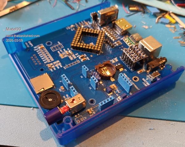 I might be back on track now. :) Plugged in a brand new PGA2350, loaded the HDMI version of the firmware and it booted. HDMI is working now (at 640x480 anyway) and so is the SD card after realizing that you can't set system SPI on this... Doh! Still quite a bit to do, but at least there's hope now. :) My missing resistors and tantalum caps have turned up too. EDIT: Oh yes.... :) The PS2 keyboard, audio side and LED strip are working. The controller port was part tested yesterday. The tiny little speakers sound awful, but should be a bit better when cased as what little bass they can produce is totally lost without a baffle of some sort. EDIT: And now the ESP8266-01S can be used via COM1. I have a crude terminal program running and I've got it to say something other than "ERROR" so things are looking up. I'm working on a custom Library for this board to support configuring the controller port and, hopefully, the ESP (if I can figure out how to use it!). Edited 2026-02-14 06:18 by Mixtel90 Mick Zilog Inside! nascom.info for Nascom & Gemini Preliminary MMBasic docs & my PCB designs |