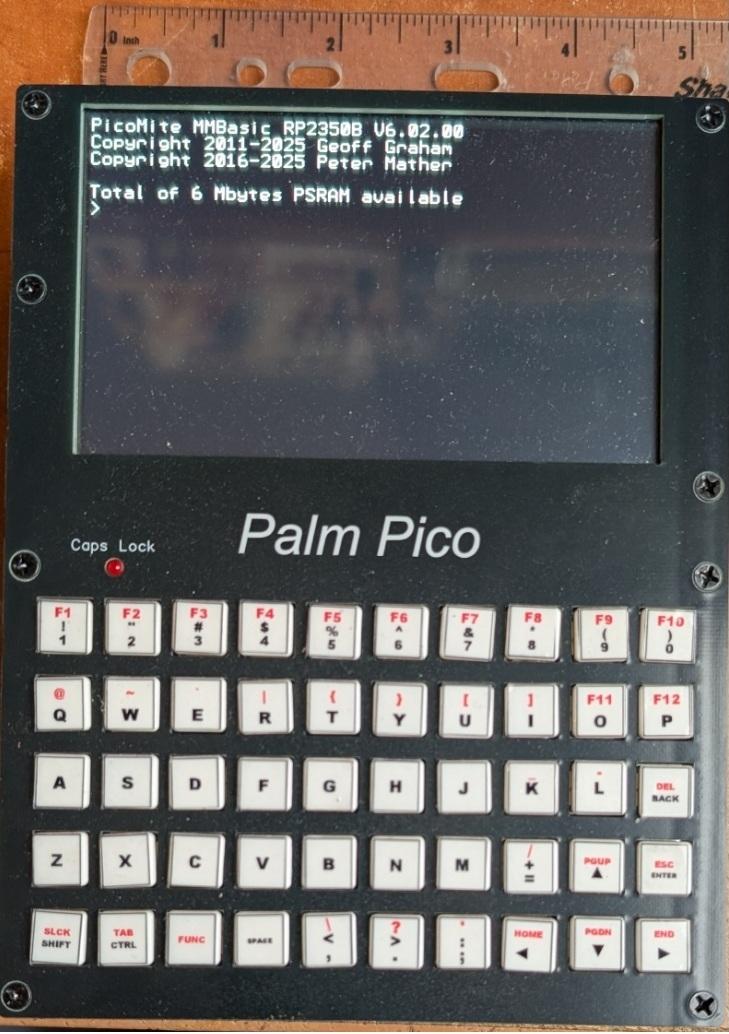 Thanks for your support of the PicoCalc and MMBasic in general. I learned to program in BASIC on the TRS-80, Apple II, and Atari 800, then MSBasic, QuickBasic etc. on PCs so this is a nice throwback to writing helpful programs quickly. The PicoCalc has let me take them with me like I did way-back using a TRS-80 pocket computer. I'm currently trying to get 6.02 running on my regular PicoMite and PicoCalc so I can use the new features on both (and hopefully the CMM2 eventually). I'm running into some PicoCalc-specific issues, and I also wonder about their design decisions. I look forward to trying out a Palm Pico as a dedicated MMBasic machine. Looks nice! |
