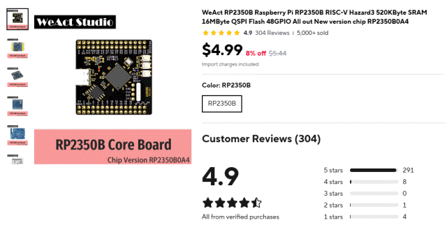 I'm getting a "Love Delivers" page, not a WeAct page. It lists several WeAct items but they are all STM32, CANFD, Mini Debugger and ESP32. Not much WeAct and no WeAct RP stuff at all.