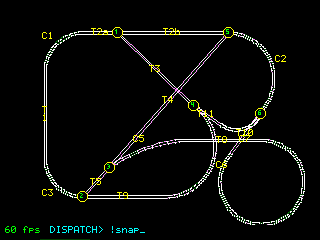 Vibe Virtual Model Railroading I wanted an application to exercise and test PicoDB . About 8 weeks ago, someone mentioned an interest in model railroad control. After I finished PicoDB, I thought that might be just the ticket. I had an HO gauge layout when I was a teenager, but have hardly given a thought to it in 60 years. I started work on it with Gemini on February 14. The exercise has been a success--the virtual model train works, and PicoDB serves it (and we found and fixed 4 obscure bugs in PicoDB). The program, PicoRR.bas, is 2058 lines long. The PicoDB library is 2545 lines. That's 4600+ lines of MMBasic code from Gemini since January 13--50 days, 92 lines a day (but with 2 sets of guests visiting and a porch built on our shed which subtracted about 10 days total). Here's a youtube video of 4 trains running. The frame rate is only 1-2 frames per second, but if this were translated to an 8-foot by 6-foot layout, the speeds would be pretty much in range: PicoRR Demo (doesn't hurt to run it an 1.5 speed). Here's the script which drove the video: s10+ve3 4,delay 3,ve3 0s10-ve3 -3 delay 3,ce3s9+s8+s4+ve3 25 at e3 inner-e,s8-s9-s4- at e3 inner-w,s16+s14+s13+ s6+s3+ve1 35,at e3 Mainline-E,s16- s14-s15+s11+,ve1 45 at e1 Mainline-W,s6-s3-s15-s11-s13- s7+s3+,ve2 20 at e1 Mainline-N, delay 2 s12+ at e3 Mainline-W,s17+s7-s8+ delay 4,ve4 7,delay 15,s8- ve3 35,s17+ at e1 Mainline-S, delay 3,s17-s18+ at e2 Inner-W, s4+s2+s1+s3+s7-ve4 20 s12-s13+ve3 25, ve1 25 at e1 Mainline-N,delay 3, s13-s12+ s17+ve3 35,ve1 35 at e3 Mainline-W,S18- at e1 Mainline-S,ve1 2,ve3 2 delay 5,s17-s18+ve1 25, ve3 25 s13+s12- Loop 16 This is running on Peter's Pico2 HDMI PCB: ![]() You drive the trains by typing commands (on PC/laptop keyboard--I don't have a keyboard attached to the PCB) at the "DISPATCH>" prompt on the Screen/LCD. For instance, s6+ve1 20 will flip switch 6 out of spur2 and start up the train behind Engine E1. Here's the quick help ("?" at the "DISPATCH>" prompt) for dispatch commands at the keyboard. ======================================================================= MODEL RAILROAD OS - HELP MENU ======================================================================= --- DISPATCH COMMANDS --- Commands can be chained together using commas (e.g., S1+, VE1 10, CE3) Switch commands can be auto-chained (e.g., S5+S3+S4-) V[E#] [speed] : Set velocity. Positive=Forward, Negative=Reverse. Use + or - to increment/decrement from current speed. Ex: VE1 15 (Moves Engine 1 forward at speed 15) Ex: VE1 -5 (Slows Engine 1 down by 5) Ex: V0 (GLOBAL EMERGENCY STOP. Halts all trains) S[#][+/-] : Throw switch # to Diverging (+) or Straight (-). Ex: S5+ (Throws switch 5) Ex: S5+S3- (Throws 5 diverging, 3 straight) U[E#] [qty] : Uncouple [qty] cars from Engine # and drop them on the current track segment. If [qty] is omitted, drops ALL. Ex: UE4 2 (Drops the last 2 cars from E4's consist) Ex: UE4 (Drops all cars, leaving only the engine) C[E#] [qty] : Couple Engine # to cars parked on its current track. Ex: CE3 1 (Couples exactly 1 car to E3) Ex: CE3 (Couples ALL cars on the track to E3) A[Loc][R/L][E#] : Fast-Assemble a consist at [Loc] facing [R]ight or [L ]eft. Ex: ASpur1RE3B1 (Puts E3 and B1 on Spur1 facing Right) RR : Rotate the Roundhouse turntable 180 degrees. H, ?, !H : Display this help menu. --- SCRIPTING COMMANDS --- (Used inside .scr files, or processed via the pre-processor) DELAY [sec] : Pauses the script for [sec] seconds. Ex: DELAY 5 AT [E#] [Loc] : Pauses script until Engine # enters [Loc] (SegID or Friendly). Ex: AT E3 Spur1 LOOP [n] : Jumps script execution back to line [n] (default 1). Ex: LOOP 8 --- META / SYSTEM COMMANDS --- !! : PAUSE / RESUME. Instantly freezes/unfreezes physics and scripts. !RECORD [name] : Begins buffering live commands to a .scr file. Ex: !RECORD myrun.scr !STOP : Stops recording and saves the buffer to the file. !PLAY [name] : Compiles and executes a script file. Ex: !PLAY myrun.scr !SNAP [name] : Save a screenshot to the SD card. Defaults to l.bmp. Ex: !SNAP yard.bmp !LAYOUT [#] : Hot-swap the track geometry to Layout #. Ex: !LAYOUT 3 !SHOW [C/F] : Toggle overlay labels on the layout. Ex: !SHOW F (Toggles Friendly Names) Ex: !SHOW C (Toggles Car IDs) !TEST [Code] : Executes raw MMBasic code or internal diagnostics. Ex: !TEST EXECUTE Print V(1) ======================================================================= There are 3 layouts available at present: ![]() Fuller documentation is in the zip file, which contains everything needed to run on a Pico2 HDMI, 640x480 Mode 3. I think it will work with VGA, but haven't located the boards I know I have somewhere. I have it displaying, but not yet running, on LCD 320x240 and 480x320. The library (which contains the PicoDB database engine) needs to be saved with LIBRARY SAVE. There are two driving files: roster.csv (which defines engines and cars), and segments.csv (defines track segments and switches): Roster: CarID,CarType,PixLen,ColorCode,Location,Sequence,Layout E1,Modern Eng,20,8,Spur2,1,* P1,Passenger,24,3,Spur2,2,* P2,Passenger,24,3,Spur2,3,* P3,Passenger,24,3,Spur2,4,* P4,Passenger,24,3,Spur2,5,* E2,30s Engine,16,12,Spur3,1,* C1,Centerbeam,22,7,Spur3,2,* R1,Reefer,16,5,Spur3,3,* G1,Gondola,16,2,Spur3,4,* H1,Hopper,14,4,Spur3,5,* T1,Tank Car,15,15,Spur3,6,* B1,Boxcar,16,10,Spur3,7,* E3,Yard Eng,10,9,Spur6,1,* E4,Modern Eng,20,8,Spur4,1,3 B2,Boxcar,16,10,Spur4,2,3 B3,Boxcar,16,10,Spur4,3,3 T2,Tank Car,15,15,Spur5,101,3 B4,Boxcar,16,10,Spur5,102,3 Segments: LayoutID,SegID,Type,Len,X1,Y1,X2,Y2,Radius,Next1,Next2,Next3,Friendly 1 ,L3,S,60.00,20.00,0.00,80.00,0.00,0.00,2,3,, 1 ,L2a,C,31.42,80.00,20.00,270.00,360.00,20.00,3,L2b,, 1 ,L2b,S,35.00,100.00,20.00,100.00,55.00,0.00,L2a,L2c,, 1 ,L2c,C,31.42,80.00,55.00,0.00,90.00,20.00,L2b,4,, 1 ,L1,S,60.00,80.00,75.00,20.00,75.00,0.00,4,1,, 1 ,L4a,C,31.42,20.00,55.00,90.00,180.00,20.00,1,L4b,, 1 ,L4b,S,35.00,0.00,55.00,0.00,20.00,0.00,L4a,L4c,, 1 ,L4c,C,31.42,20.00,20.00,180.00,270.00,20