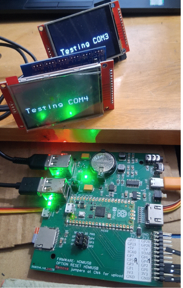 I plugged a RP2350A-Zero pcb with ILI9341 LCD directly into one of the board's USB connectors, got recognition, did OPEN "COM3:9600" as #1 and then PRINT #1, "CLS RGB(BLUE)" and got a blue screen. But the PCB didn't supply enough power to do much more--it would restart.