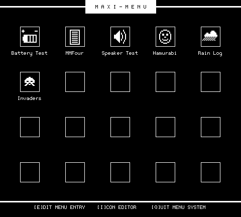 I'm about to release my menu program, "Maxi-Menu". Just a few small things to tidy up and it will be available for download. Here are two screenshots. The first is the main menu page and the other the built-in icon editor.