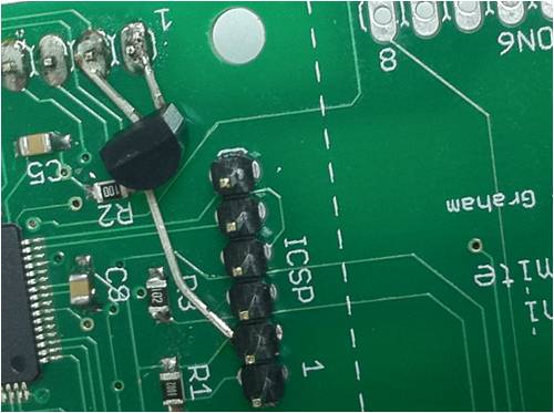 The 3.3v output connects to the 3.3v bus at the ICSP connector pin 2.