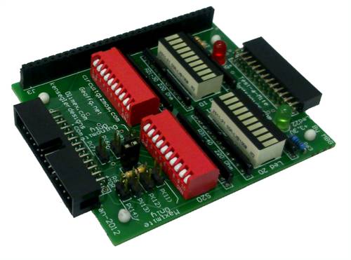I did it a few months ago using one of Dontronics old SimmStick DT203 boards. One advantage is the LED's have Darlington drivers so don't load down the PIC. There's no neat IDC connection unfortunately as you can see but it is pretty flexible.