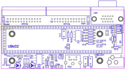 I have designed a PCB to convert a UBW32 to a CMM (based on Geoff's cct) as shown in this overlay. The design is complete but I need to check a few things before I commit to manufacture.