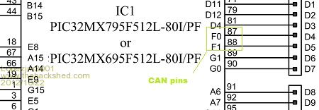 Thanks Mick, This is the way I want to go. The circuit diagram you provided is the same as that used by the Duinomite Mega CAN circuit that uses a PIC32 connecting to pins 58(RF0) and 59 (RF1). I am already running mmbasic 4.0 with CAN commands that were provided by John Harding. Hopefully it should be straight forward to get this done. Lopez |