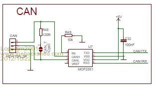 I got the circuit from the Duinonite range of `mites so I assume that it works ok as many people are using DM for CAN. PS. The pinout of U2 (in the schematic) is NOT drawn the same as the physical IC numbering convention. Mik Mick's uMite Stuff can be found >>> HERE (Kindly hosted by Dontronics) <<< |