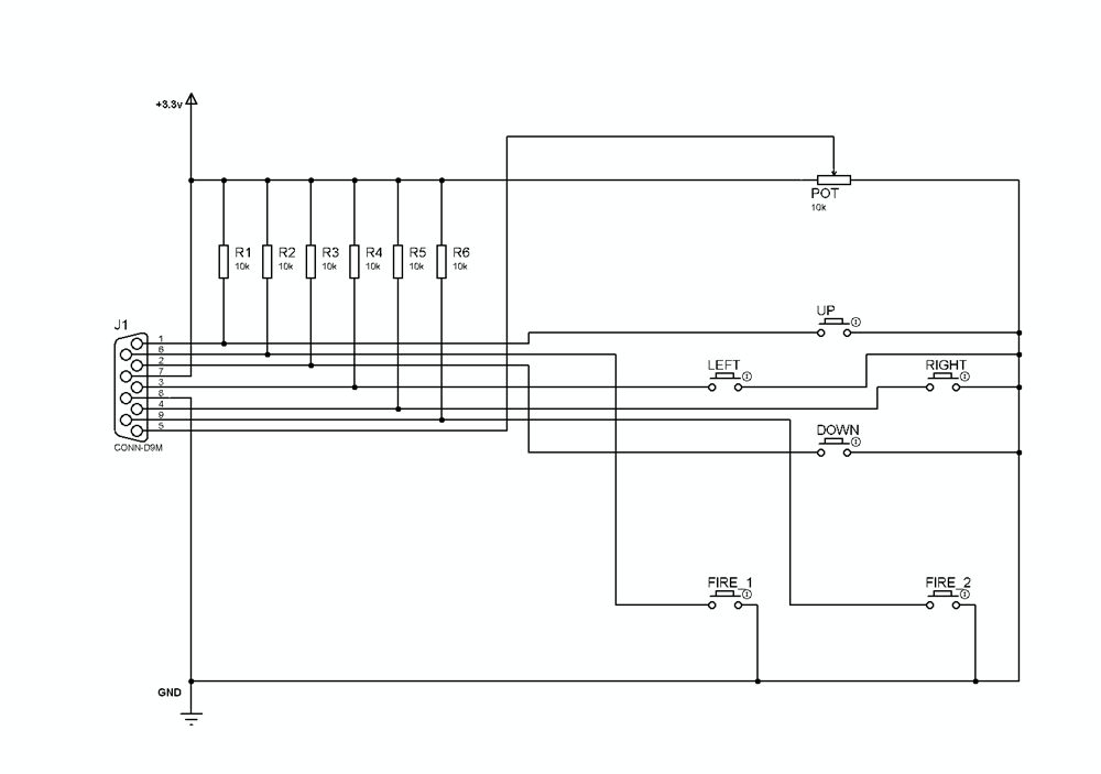 Yes. This good. It supports analogue X/Y pots and digital switched inputs. I have an idea for a simple and low cost joystick interface. The idea is to have a really small PCB soldered directly to the pins of the IDC (?) maximite connector. A 9 pin D type connector will also attach directly to the PCB by wedging the PCB between the D connector pins. The whole thing is very small. Just need someone to make up a professional PCB. Nick |