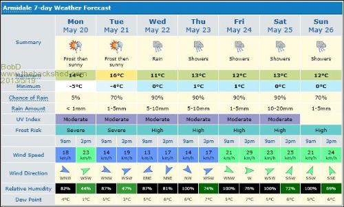 Brrrr is right. Coonabarabran is OK http://www.weatherzone.com.au/nsw/cw-slopes-and-plains/coona barabran but Armidale is punishment http://www.weatherzone.com.au/nsw/northern-tablelands/armida le