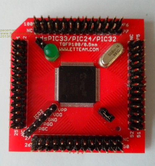 Well I finally got brave and used one of my virgin $10, 100 pin, 0.5mm chips (PIC32MX795F512L-801PT) from MicroChip to ‘grow’ a Colour Maximite (CMM) on a break-out-board (BOB) I bought. This BOB can be used to make a CMM or alternately it can be used as a ‘generic’ PIC32 giving access to all pins. I wanted to be able to use it in both those modes so that I could use it in CMM projects and also use it for loading some stand-alone learner hex files compiled from C code via my PICkit 3.