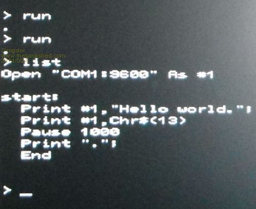 If I change the code to the one where there is the ; on the end of the hello world message, and print #1,chr$(13) on the next line, I still only get 12 bytes - the message, with no CR or LF at all - code is totally ignoring the line Print #1,chr$(13);