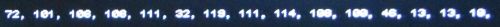 Print #1, "Hello." + CHR$(13) '// 7 bytes