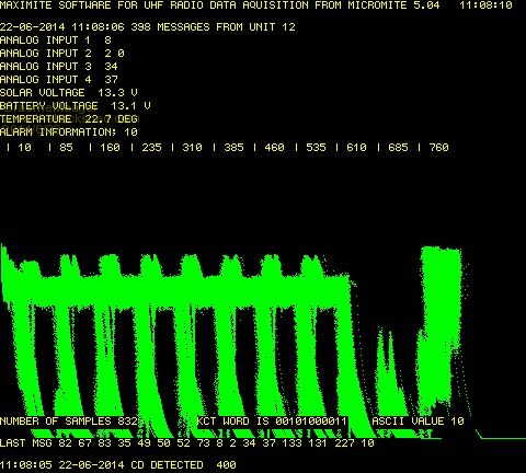 So I have given the Kansas City Tape Interface protocol a bit of a go. Have got some results....... Here is a screen shot of the demodulated sampled word generated by the micromite, transmitted over the UHF radio and analysed by the maximite.