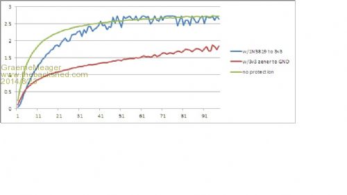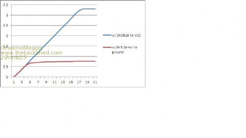 Grogs, I didn't think you did criticise my design, .. in fact this is NOT my design it is standard practice in the industry for protection of Analog inputs, Yes I Googled it, it is widely used. I gather that the reason it works is the current is limited and in comparison to the reserve in the supply capacity it is deemed negligible. The supply voltage was unchanged, actually went up from 3.29v to 3.30v, so it did the trick. I have used ZENERs in the past but always on digital inputs so I didnt think twice to use them on analog but the results were `mind opening'. I learned something in the process and thought I would share as I am certain it would surprise many others out there. Mick Mick's uMite Stuff can be found >>> HERE (Kindly hosted by Dontronics) <<< |