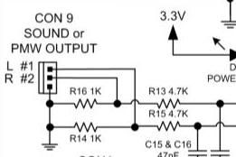 In order to make Color Maximite switchable (audio or pwm) 1) Remove R14 and R16 2) Connect 0.1uF capacitor from L #1 output to MMBasic pin 1 3) Connect 0.1uF capacitor from R #2 output to MMBasic pin 2 4) For audio (TONE or softened PWM): SETPIN 1, DOUT