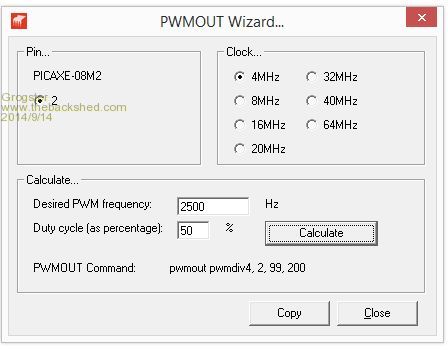 > Are you having issues with PICAXE? For the PWM frequency ..... If that could be simply expressed in Hertz / Second > Can I help? Please do |