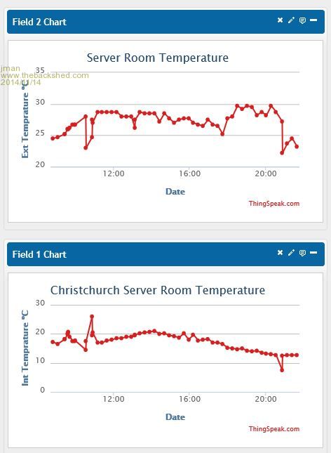 Here is a little project I have been working to monitor the temperature in our server room at work. We hardly ever go in there so I thought we better keep an eye on the cooling.