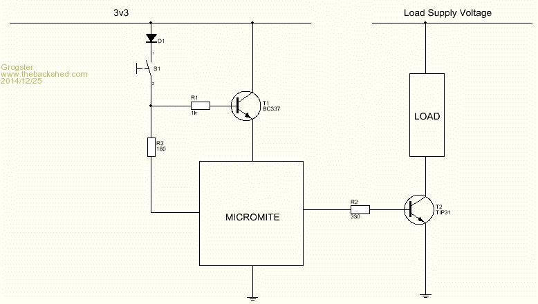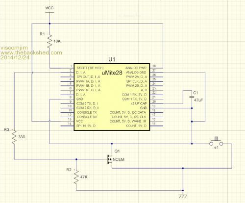 @TassyJim, I like this idea when something external can fire up the uMite and then it can take over and shut itself off. This will more than likely be the way I will try since I have a push button in this circuit.