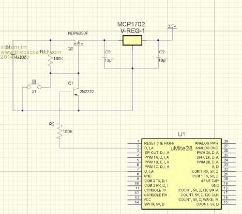 On this same approach of using a mosfet to power the circuit once a switch is pushed to "start" the circuit and then the uMite turns itself off basically, has anyone had any good experiences with the "logic level" fets that work on 3.3v instead of the 5v. There doesn't seem to be many options when it comes to a 3.3v logic level fet that I can find anyway.