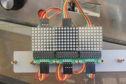 I've been playing around with 3 of these 8x8 LED displays with MAX7219 drivers for the last few weeks as a larger display for my timer project that can be read across the room. I started off with the demo that ViscomJim put on the forum. Since then I have a program that works to display some graphics or a counter but I want to make sure I have the orientation of the displays correct before it is all mounted in a a case as I saw a few people saying that their displays came up sideways or mirrored with some other demo programs.