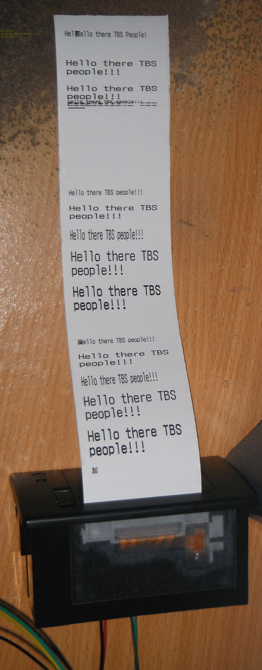 Nice one G. I see under your Chinese message to me that FontB is 41 characters per line (if my eyes are correct) and a leading space (or two). Is there another font offering 80(ish) characters per line? This is just about readable in the photo but what is it like to read when it is front of your eyes (i.e. physically in your hands)? Whilst on FleaBay did you see any wider thermal printers? Sorry for all the Qs but have a requirement for something . . . . WW |