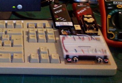 The basic idea is to build one of Geoff's ASCII controllers into a Keyboard and plug the hole with a breadboard.