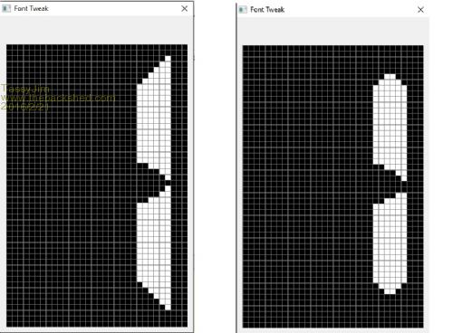 // Font type : Numeric (10 characters) // Font size : 32x50 pixels // Memory usage : 2004 bytes #if defined(__AVR__) #include <avr/pgmspace.h> #define fontdatatype const uint8_t #elif defined(__PIC32MX__) #define PROGMEM #define fontdatatype const unsigned char #elif defined(__arm__) #define PROGMEM #define fontdatatype const unsigned char #endif fontdatatype SevenSegNumFont[2004] PROGMEM={ 0x20,0x32,0x30,0x0A, 0x00,[SNIP],0x00, // 0 0x00,[SNIP],0x00, // 1 0x00,[SNIP],0x00, // 2 0x00,[SNIP],0x00, // 3 0x00,[SNIP],0x00, // 4 0x00,[SNIP],0x00, // 5 0x00,[SNIP],0x00, // 6 0x00,[SNIP],0x00, // 7 0x00,[SNIP],0x00, // 8 0x00,[SNIP],0x00, // 9 }; (Each data line is 200 bytes wide, I snipped out 198 values for brevity.) Can you post exactly which font you want modified? Both "SevenSegNumFont", 32x50 pixels, #2 from the top, and "SevenSeg_XXXL_Num", 64x100, #9 from the bottom, have been mentioned, plus you pasted code for the smaller font. Visit Vegipete's *Mite Library for cool programs. |