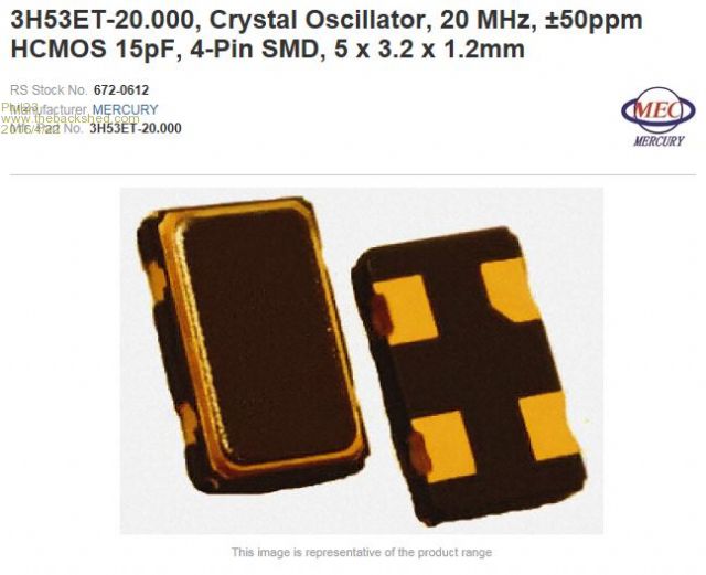 The one I originally linked to and the one you link to are crystal oscillator units, these take VCC + GRN and output the 20Mhz. This is not what is required here.