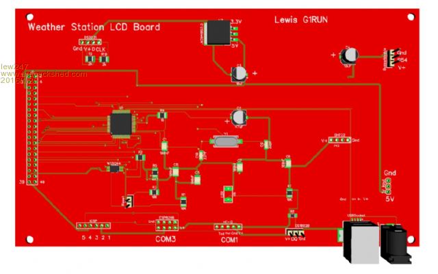 I had to redo the outdoor unit as WhiteWizzard said, there was a short on the board that we couldn't find, so I repositioned some of the components and got rid of some via's and generally tidied up the pcb and hopefully it's fine now. I can't get working on the code properly until the pcb is populated as I don't have a micromite here with a big enough voltage regulator, it needs at least 500mA and ideally a 1A psu/regulator That is only for testing so I can have all the modules powered up at once and test everything. In normal use the power consumption will be much less. The fridge/freezer units, I had 2 pins backwards on the voltage converter so Phil very kindly swapped them with miniature wire. I have changed the circuit diagram/pcb layout so it's now correct. I know the code (mostly) for these units but I'm in no hurry with them as they are only a "fun" addon so the LCD unit can keep an eye on the fridge/freezer and if the door is left open or the power fails it will warn me (nothing to do with weather, I just thought it might be fun to add it) The LCD unit we had major problems with, Royal Mail "lost" the special delivery package that had the LCD, and the PCB in that I sent to Phil to be soldered up. I had to order a new LCD and some other bits and pieces and get a new board sent to Phil He is very kindly soldering them up for me, and sometime in the next week or so I should have them back here and I can start working on the code properly. I already have working code for the main part of the weather station, wind speed, direction, rainfall and so on, I also have code for all the sensors I will be using. I have to add all the code into one program, then get testing properly. Hopefully within the next month (wishful thinking maybe**) it will be all done and ready to post here. I can upload the circuit diagrams/pcb layouts if anyone wants me to. They are NOT as small as MicroBlocks unit above, but they are a realistic size that most people will be able to solder properly Outdoor unit 75mm X 50mm LCD Unit is the exact size to fit on the back of the 7" LCD panel (185mm X 110mm), but I have also done a smaller pcb for anyone who wants to use a smaller LCD The fridge/freezer sensors are 50mm X 50mm |