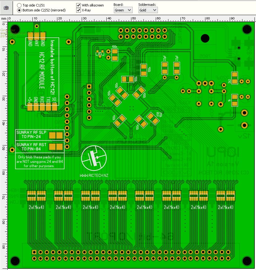 You can only use one type of RF module, and I was designing it mainly for the 1022 module, but I had the space, so it was easy to incorporate the HC-12 module, then you just install one or the other - the HC-12 is probably of most interest to forum members here, allowing you to build a wireless 64 I/O node if you wanted. You could setup many of these and have hundreds of wireless I/O lines if you wanted, all talking back to the host system.