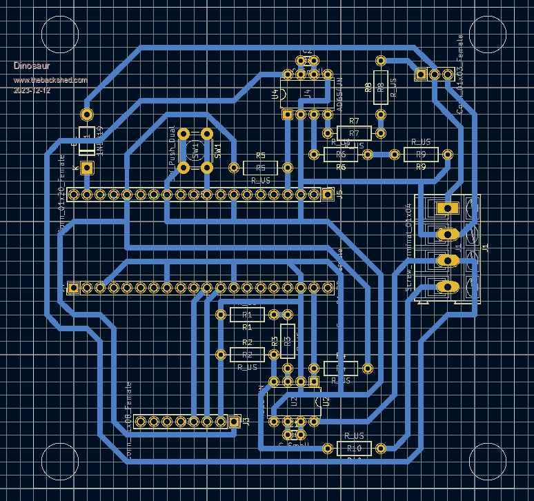 Hi All Installing KICad 7 on Debian 12 is like going through childbirth. After going through the learning curve of using it, I managed to get to the point where I have a schematic and a circuit board. It is basically a two channel Volts to Freq. converter that is managed with a Rpi-Pico. When I exported to the PCB program it placed all components on the F.Cu side. So started placing tracks until all the spiders nest was gone. Then Google informed me that I should have drawn them on the B.Cu side. So, using properties, managed to transfer the tracks to B.Cu. Also drew the board outline on the Edge.Cuts layer. So, now getting the pcb made/etched/engraved. I use an engraver where I volunteer which has ArtCam and I am sure it is capable of isolation routing. But to get from KiCad to a gcode file is not as easy as installing various tools. With the latest Debian 12 , EVERYTHING is painful. I don't intend to make dozens of boards, so will pay to get a couple made.(any local offers ?) However, what I am not sure of, is when someone makes the PCB will I end up with a mirror image that is wrong.I assume that I am looking at B.Cu from the F.Cu side, as if the board was transparent. Also, it is a single sided board, but all the pads look like via's.(meaning double sided) I was hoping someone familiar with KiCad could look at the pic and give me some answers. Would be happy to send someone files if needed. ![]() Regards Hervey Bay Qld. |