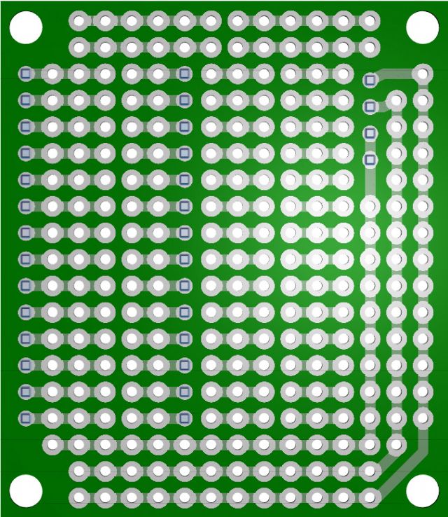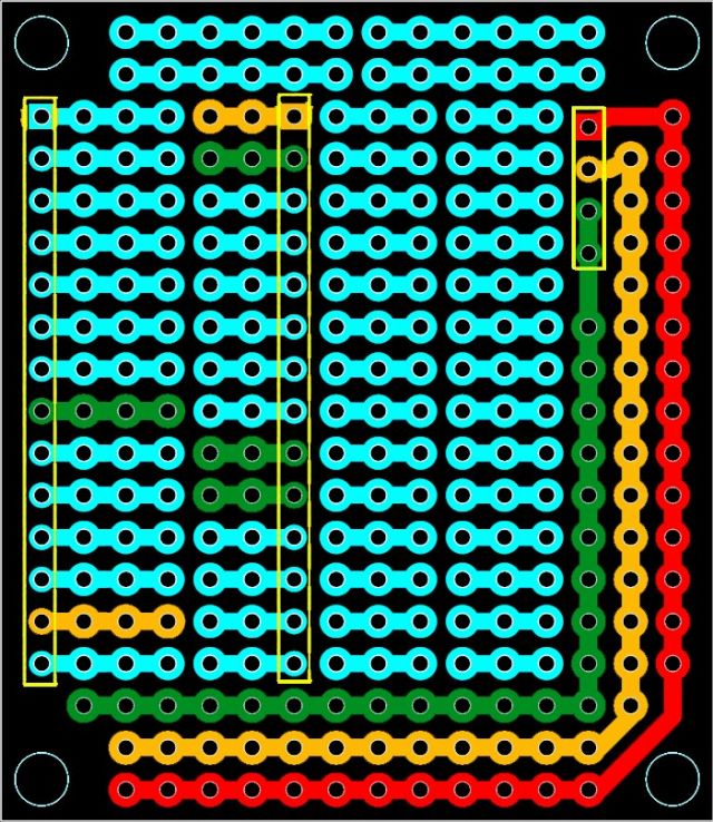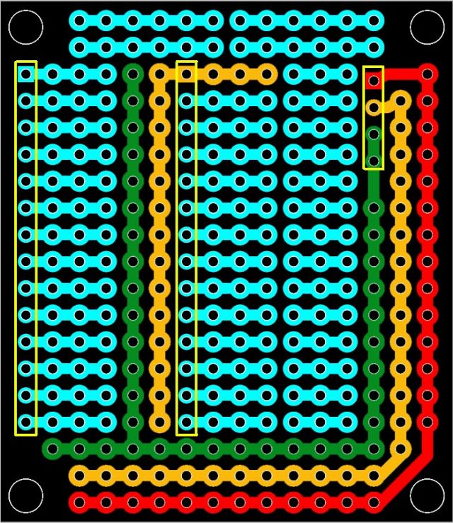 If the -ve & 3.3 rails ran between the 3x1 strips it may make it easy to apply power to a DIL package, and it also might mean the 2 holes hidden under the DIL package are not lost Real-estate.