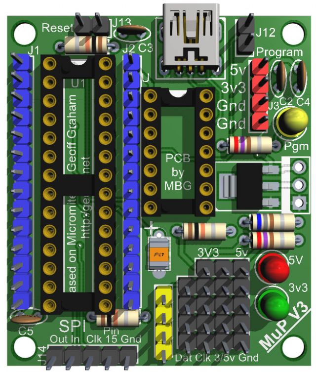 The board is the EXACT same size as MuP and the mounting holes will align with MuP3 (not MuP2 unfortunately)