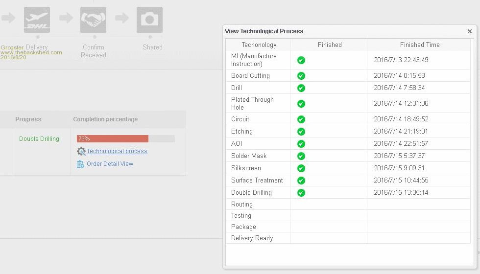 As you can see from the above screen-shot, you can get a comprehensive progress report on any board you have ordered, which I must say that I rather like.