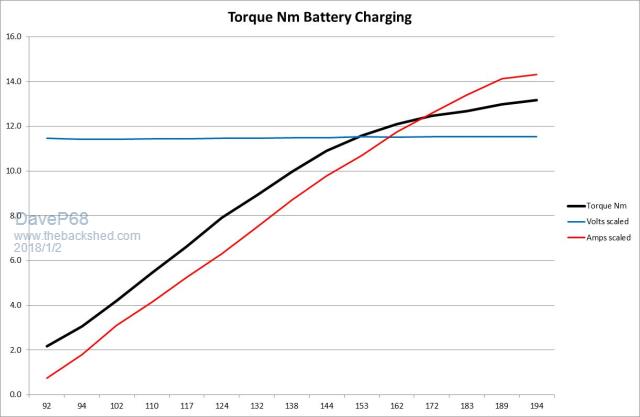 Note how the current from the stator runs in proportion to the Torque in the second and third graphs!!