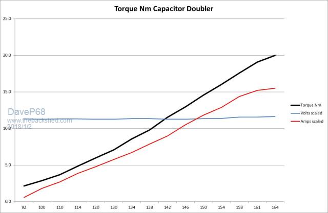 One advantage relating to capacitor doublers that is that tends to keep the blades under control in high winds by taking lots more torque at high RPM as per my graph above. A stator directly connected to a battery will tend to go into iron core saturation and has the potential to result in blade run away if the furling system doesn't do it's job properly at this point. So it's not all doom and gloom for capacitor doublers used with F&P stators.