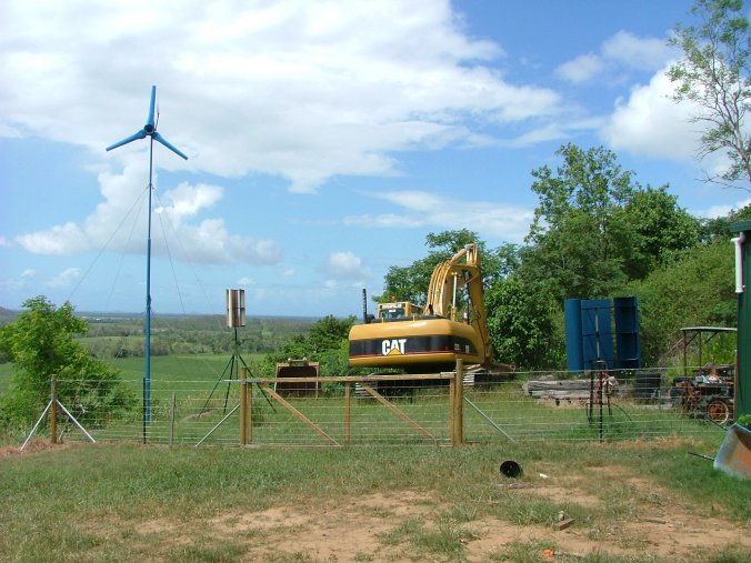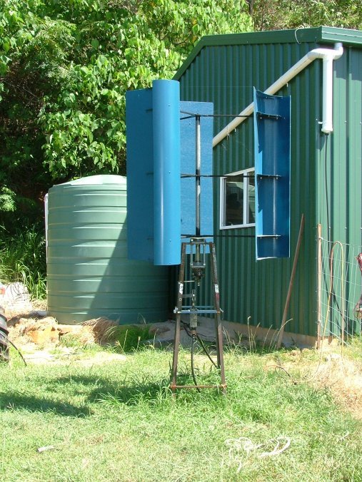 I also have a 12v electric pump ( powered from the batteries charged by the F&P windmill ) that I turn on every couple of days to top the tank up. There is a float switch to turn the pump off once the tank is full. The wind-pump is fed from a large 5000 litre tank next to the shed. This tank collects rain water, or I fill it with the bore when its dry. The top header tank provides a gravity feed to the house. The whole system works well. Originally the house ran on the jet pump( bore ) at the bottom of the hill, so if there was a problem with the pump, or no power, I had no water. So the new system means I no longer rely on the jet pump, but more on this later.