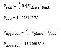 That Real and Apparent power shouldn't be a mystery if you consider which way the "vectors" point on the AC power triangle. The third side is "reactive power". I'm mixed up by the "3/2" but maybe Herb is right: it's just approximate and the correct factor should be 1.73 or "square-root-of-3".