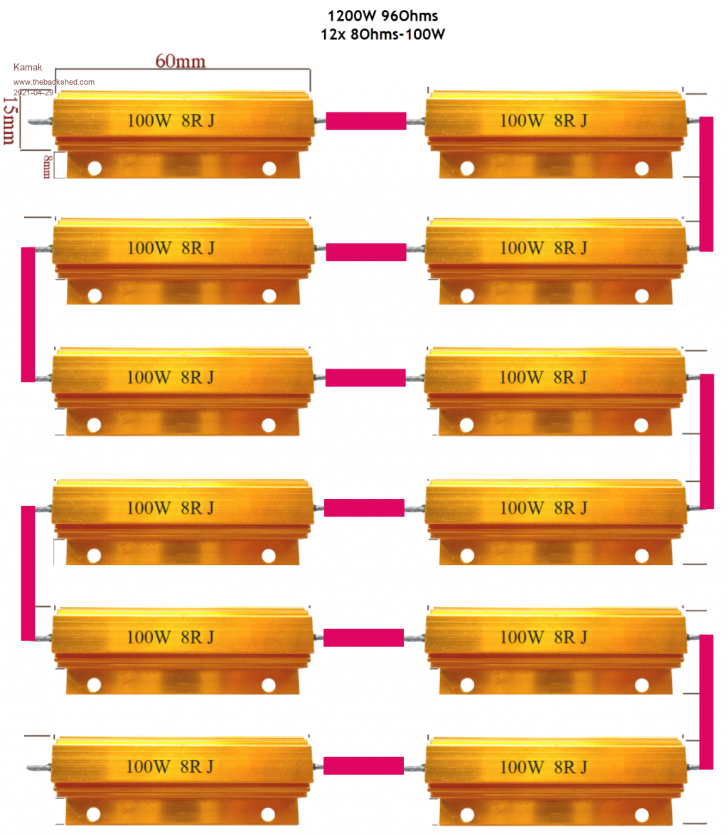 "10ohm loads(100W incandescent bulbs)" 10ohm load at room temperature, it climbs to 120ohms at 110W. 120V x 0.919A = 110.28W, R = 120/0.919 = 120ohms.