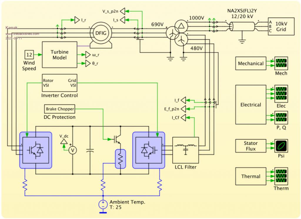Understandably, the other method of speed control is load control, using torque. This is how some of the big boys do it. It's called a doubly-fed induction generator converter (DFIG). This demo of a modeler called Plexim describes how it works, and allows a free trial for a month, with access to the files that model this wind turbine system. I might check it out just for educational fun.