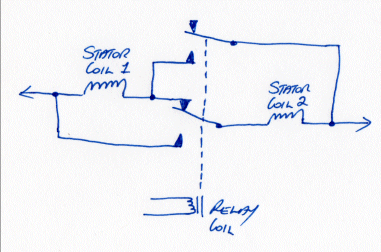OK, quick and ugly circuit. This is for one phase, 2 coils. The relay has 2 changeover contacts.