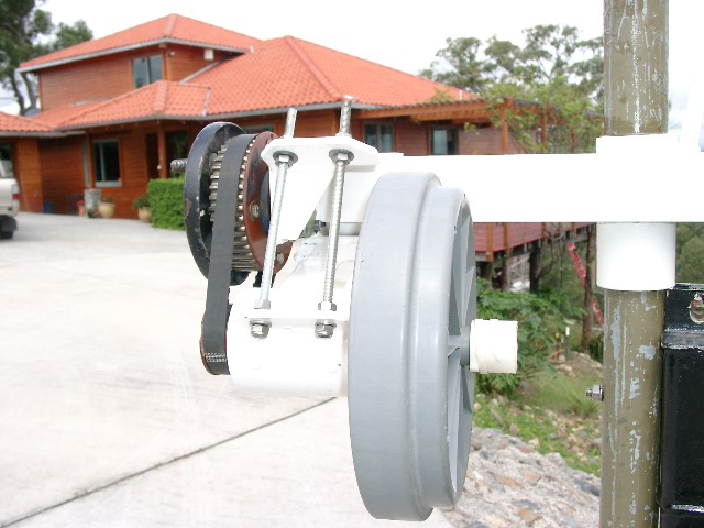 Thanks for the thoughts Guys. I got the belt and sprocket,small one from an engineering Co in Sydney a couple of years ago,one of those hard to find second hand joints. But car wreckers places will get the same stuff-the belts being much larger,so you'll have to buy a shorter one from "blackwoods" or "bearing services" Etc.-around 30 dollars. I'll get stuck into finishing off the blades now that I have the "test" pole up for balancing,Etc. Hoping to get good results from 3 years of finishing off these bloody monsters-takes me ages to get things finished,with a big property ,I have hundreds of things to do . Anyone living around Brisbane or the south-east area is welcome to come on over and have a chat,plenty of stuff to look at.- call me on (07)55453513. Bruce Bushboy |