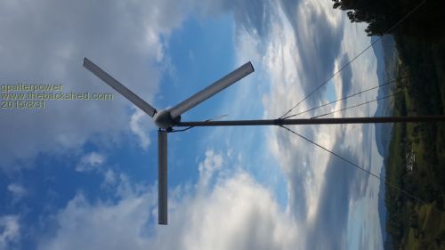 We'll its been a while but finally I have finished my mill. It's only taken 5 years! Sooo gooooood to see it up and flying. For the first couple of days there was no wind at all. Think I read that somewhere on the forum that happens when you first mill goes up. Sure enough! Then one afternoon after work I heard a whirring sound after getting out of my car. I stood there in awe watching her turn. Tracking the wind. Speeding up and slowing down. What an awesome sound! Bout a week later we had some big storms. Could not believe how fast it was turning. ...I mean scary fast. In between gusts I lowered it down to avoid possible self destruction. Originally I was going to have a 10m mast . But decided to go with a 6.5 single pole for the time being until I get a few teething problems out of the way. I had a balance issue, but I believe that it is fixed and now runs smoothly.