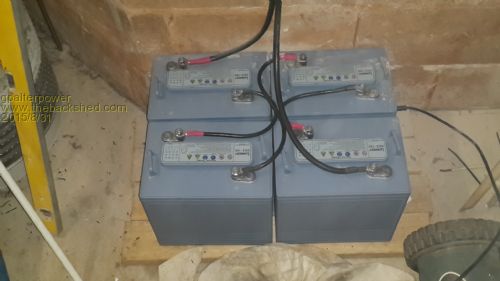 The furling is the other issue. I've seen the tail move in windy conditions but I feel it's just being pushed by sudden sideways gusts. Not sure if it's too heavy or wrong angles. Perseverance will prevail. I have a small battery bank . For starters I purchased 4 of 250Ah 6v and I can add to these later. Also just purchased a power star 3/9 kw inverter which upon reading recent articles draws considerable current on standby. And after checking the standby current it draws about 4 amps. way to thirsty . I only received delivery of the inverter a few days before I read the post about Gizmo's "building a new inverter". If only I held out for a few more days before buying from Ebay. Dam! Included a couple of pics of the mill and battery bank. Tried turning the pics around but they still came out sideways BTW...Nice build Gizmo