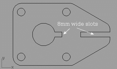 Its important that the laser operator gets the kerf offset correct for the 8mm parts, he will know what this means. The slots in the part above need to be 8mm give or take 0.1mm. Better to be 8.1mm than 7.9mm ( too tight! ). If he gets that right the rest of the parts will fit together perfectly. The 3mm parts dont need to be as accurate. + or - 0.5mm is fine.