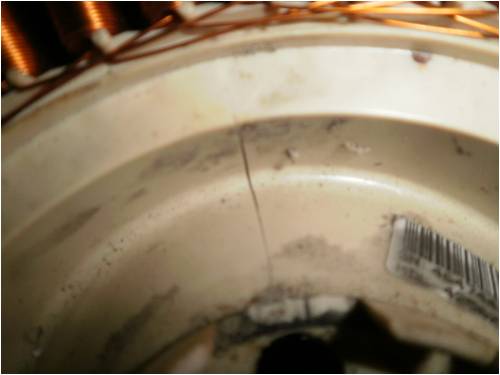 Found the one that I just rewired today at a whitegoods repair shop in their trash area! win win! a good clean one next question is this worth bothering with or destined for the bin? Cracked stator 1 this stator has some corrosion on the windings and is cracked also Luck favours the well prepared |