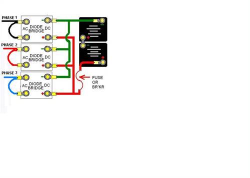 dvn8; I have never seen a modified F&P other than pictures, The one you have pictured here appears to be short on the number of output wires, I see what looks like 6 output terminals which I would expect but no wires coming off them to the diodes.The phases may be short circuit at the diode connection. this would surely make it difficult to spin. The 2 black wires circulating the stator is probably the pair of one phase The Red another phase, The third is not visible here, may be at the terminal strip solderded directly. I don't understand the bare wire connected to the diode, maybe some one can enlighten me on this. I'm waiting for the ozzie ax to fall!.. This is how I see it.if this be wrong? Let it fall. PS. You can learn about the back to back capacitors when you get some voltage showing. Hang in there you have a good start. EDIT; Re draw image to show terminal jumper wire on AC. Output X Y Z. Time has proven that I am blind to the Obvious, some of the above may be True? |