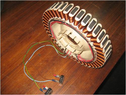 did you de-cogg like this This shows poles twisted then high spots removed. Should have take you about 15mins..... Exactly what breed do you have 60, 80 or 100S, these represent the wire size 0.6mm, 0.8mm and 1.0mm diameter wire (roughly, dont get carried away with the digital vernier) If you have 100S (lucky you) then I would be surprised if you got much at all but if you have a 60S then be VERY careful spinning it to 600 rpm as the shock may be lethal. Try some rectifiers on all three phases so you have some better measurable voltage as the three (single) phase is very high frequency thus you meter might not give a good indication. Hence be careful! i'd be trying for 4x 50W 12V globes in series, this gives you 48V handling no probs and an 80S is the most commonom 48V for 48V systems we run them in 2X7C (split in half and paralleled) and we get cut in at 200 odd rpm -hence yours should be half that as all yours are in series hence twice the voltage. Luck favours the well prepared |