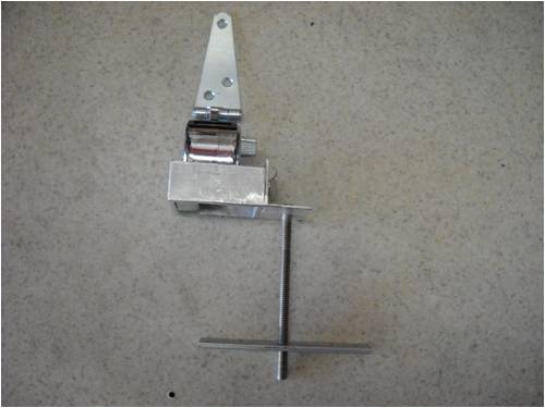 Building Update Sooner or later any self-respecting wind genny builder is going to need an accurate way to count coils of wire. For most of the crew, it can be done by hand, but when you build super small stuff like I do, the wire size gets rather tiny and you need lots of coil turns, more turns than you want to count by hand. To that end, I built myself an accurate coil-turn counter. As it turns out, I can also use it to very accurately measure my lathe's rpms. All I do is start my stop watch at the same time I start my lathe, with the counter engaged. I let it go for exactly one minute and shut things down, then glance at the counter and that's the rpms. Here we go: This is the finished toy and now I'll show you how I built it. That's a steel shutter hinge mounted on the back of the part that holds the little counter. As the cam from the winder comes by each revolution, it whacks the hinge, which clicks the counter and the numbers show in the little window. There's a knob to one side, which when twisted, resets the counter to 0000. Here's a side shot. The counter ($10 @ Staples) is pinched inside a 2" x 2" extruded-aluminum square tube I cut off a larger piece. A nylon 1/4 x 20 bolt holds it in place, wedged inside the square aluminum tube on three other sides. Here the whole contraption is mounted on my lathe bed ways. That large screw goes through to the underside of the ways and is held in place by a large bar that sandwiches everything each side of the lathe bed. Here's a tight shot of the little counter window sowing the numbers. That little knob to the right side is used to reset the counter to zero. Here's a shot of that bar underneath the lathe bed, which holds the counter tightly to the top of the lathe ways. This shows the counter, the long screw and the bar, which goes under the lathe bed for anyone who might be 3-D challenged!